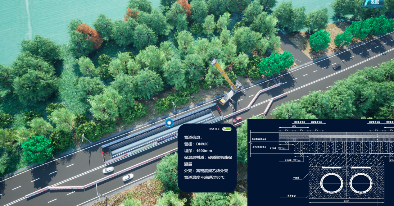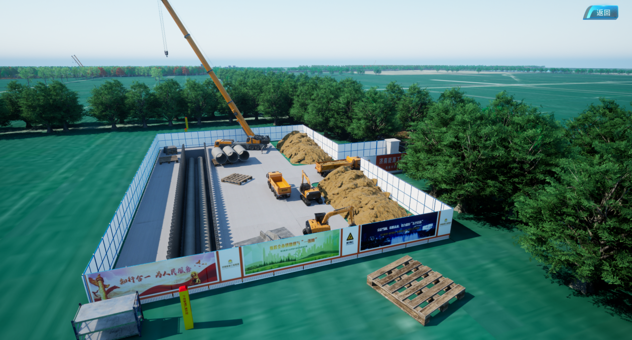 針對“東城智慧”項目,對潘王路段采用三站一網(wǎng)技術(shù)結(jié)合,進行實景還原與施工場景模擬展示,通過光纖與數(shù)控設(shè)備的數(shù)據(jù)與平臺掛接。